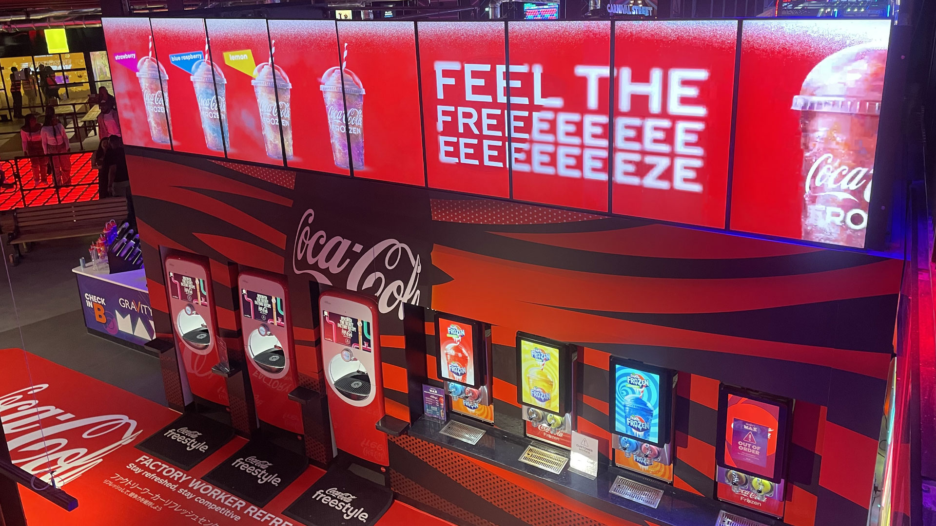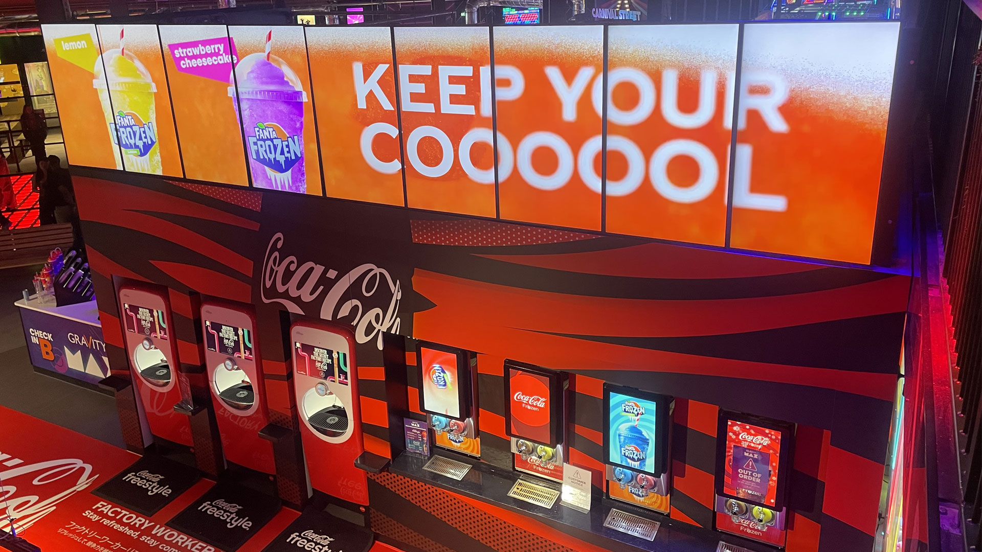 A brilliant, continued partnership with our friends at Frozen Brothers, The Coca-Cola Company and Gravity – setting the standard in brand activations, creating a captivating concept right at the entrance of the busy leisure site.